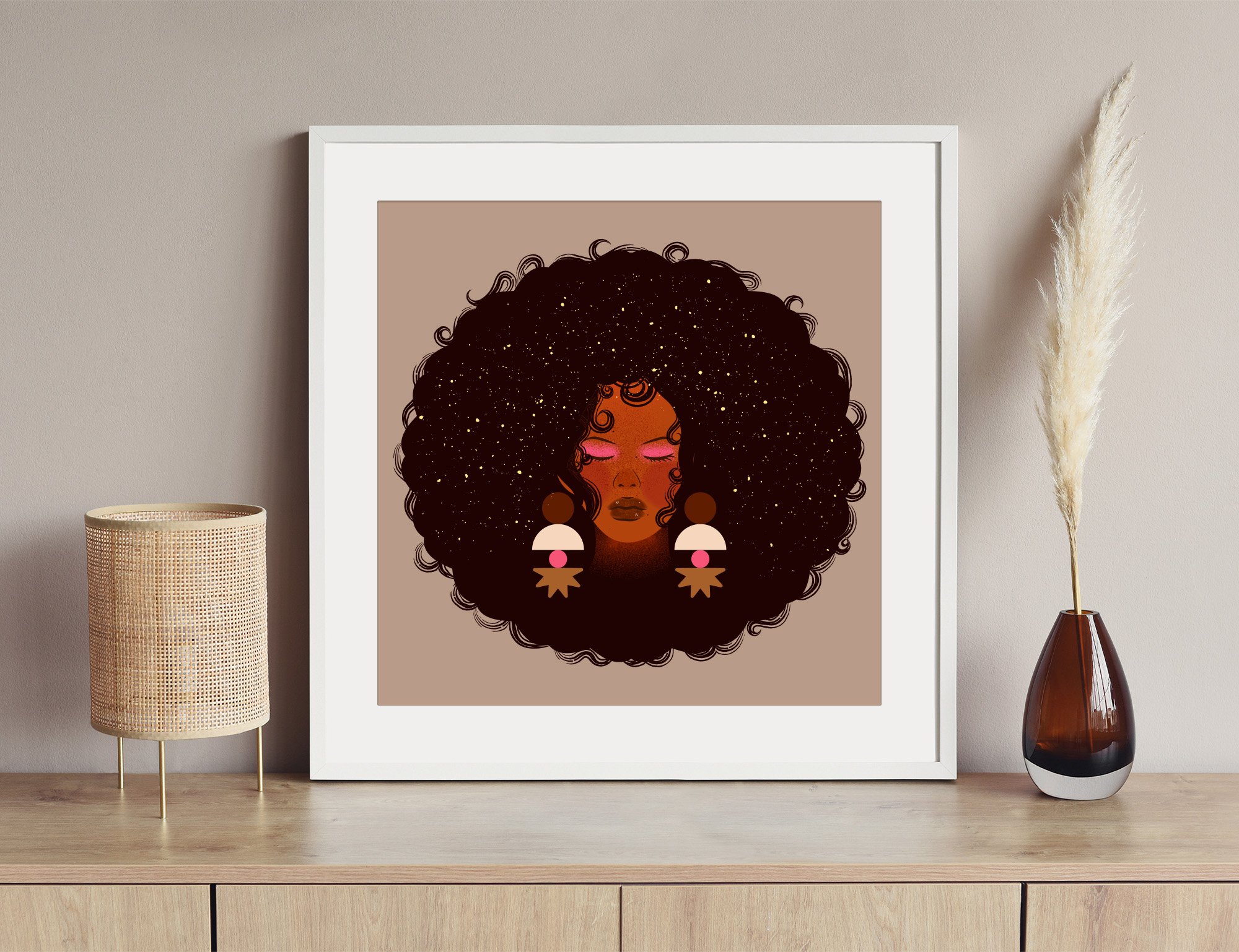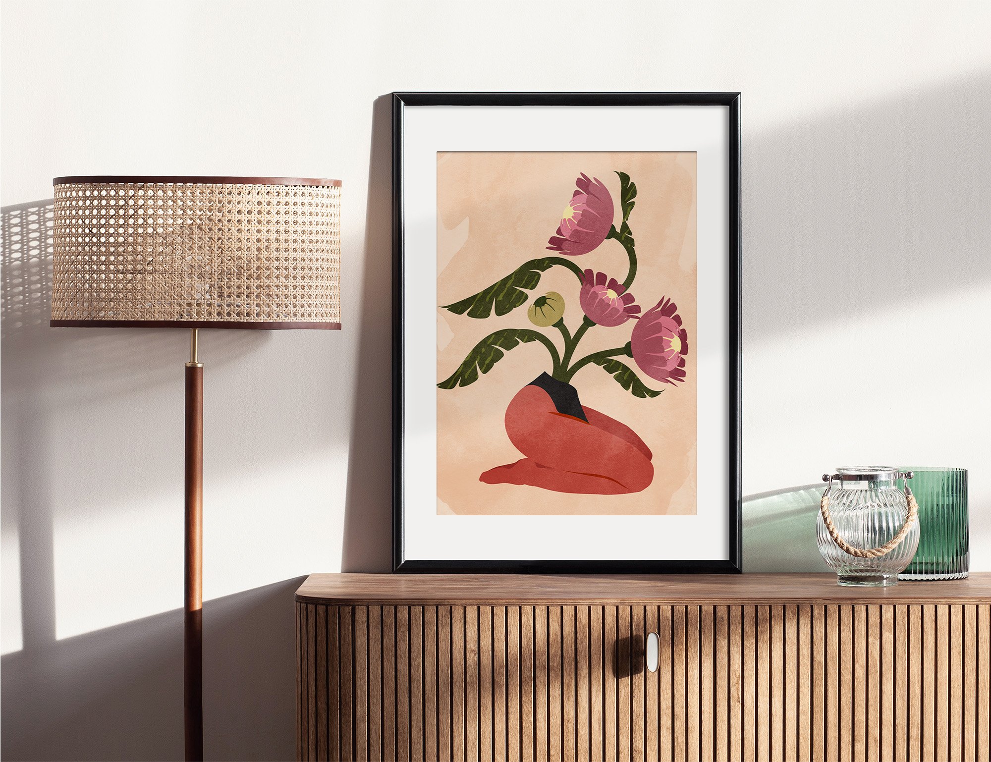 Through warm palettes and thoughtful design, she creates artwork at the intersection of art and design, celebrating diverse women, botanical beauty, and the art of becoming.